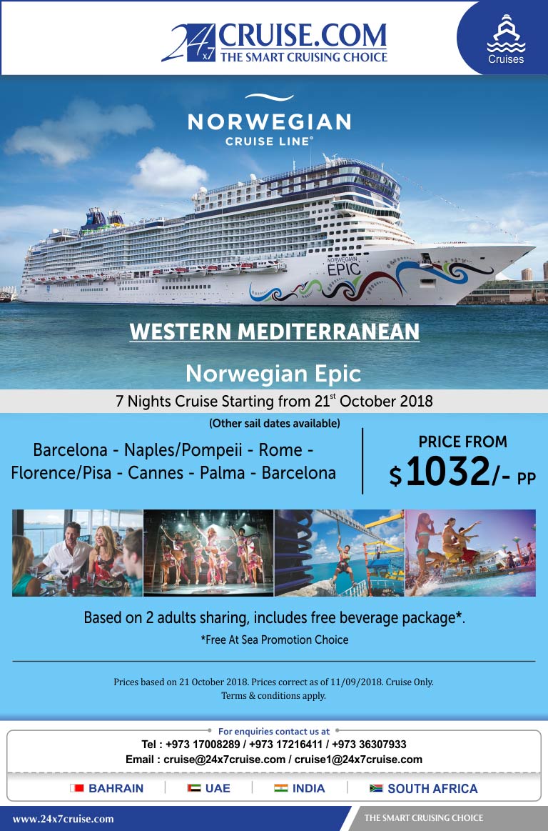 Cruise deals for Western Mediterranean from Barcelona starting from 21st Oct 2018 with Norwegian Cruise Line on Norwegian Epic